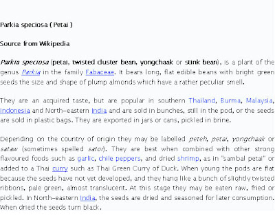 I search through the web yesterday and found that the scientific name for Petai is called Parkia Speciosa.