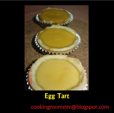 Bake some 'Egg Tart' last weekend cos still have some of the leftover evaporated milk I used to cook the Fish Fillet Meehoon Soup. Better don't waste it.