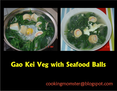 1 packet of seafood balls300gm of kau kei vegetable, use only the green leaves for the soup