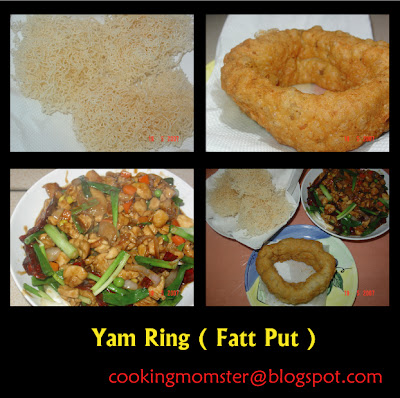 3. Then lay yam ring on top of the fried crispy meehoon.
