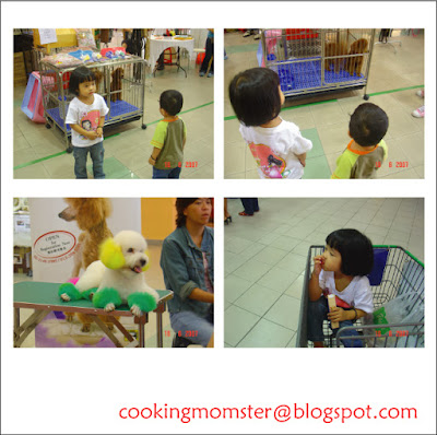 My Ee-Thern is so excited cos this little boy loves DOG. But not for me and Le-Ann. I just hate dogs although it is cute but I don't know why. Told dearie Suki before "please no pet in the house especially those with fur". Maybe is because I am more worried that their fur will be all around the house and got to vacum the house everyday. I got no such time for taking care a dog.