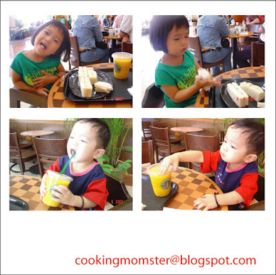 Your children look so cute!. What an expensive manggo juice. Anyway you don´t have to peel and juice it by your own :))